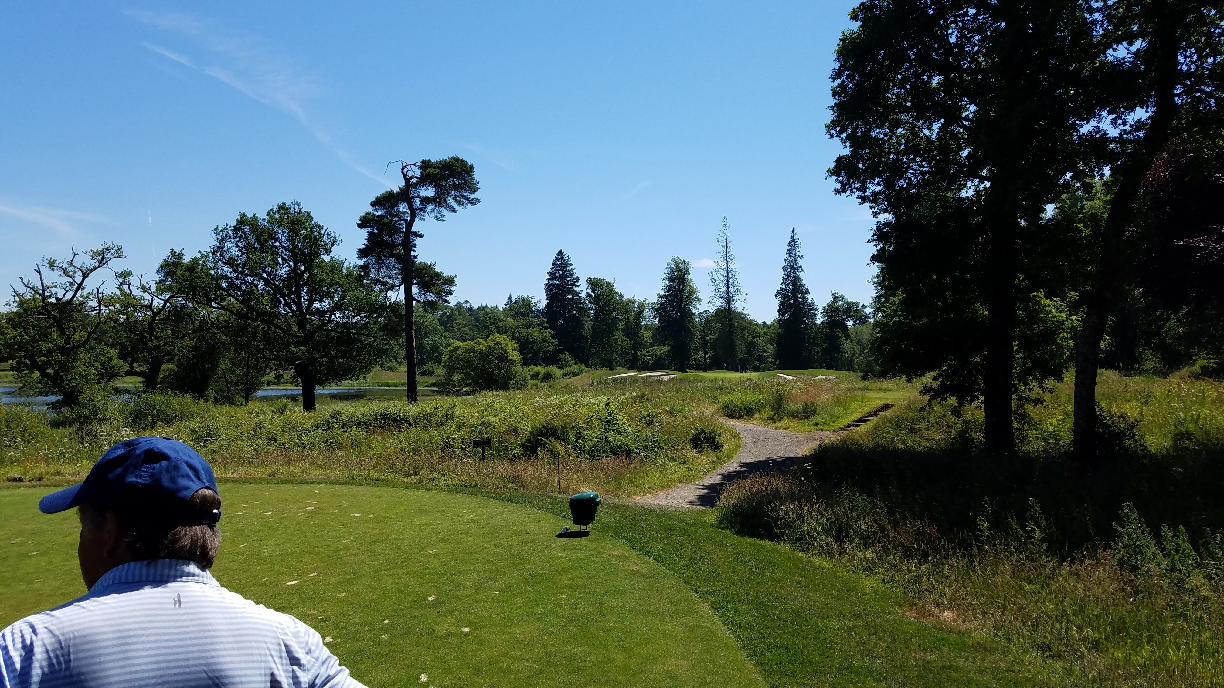 - Hole 9, Shi G’Arten: My favorite hole on the inward nine. It is a fantastic short par four that requires precision on both the tee and fairway. There are bunkers seemingly everywhere on the right and middle of the fairway and trees left. The green runs front to back with bunkers all around. A truly thought-provoking par four. I am sure it would've played much more difficult had there been true Scottish weather.